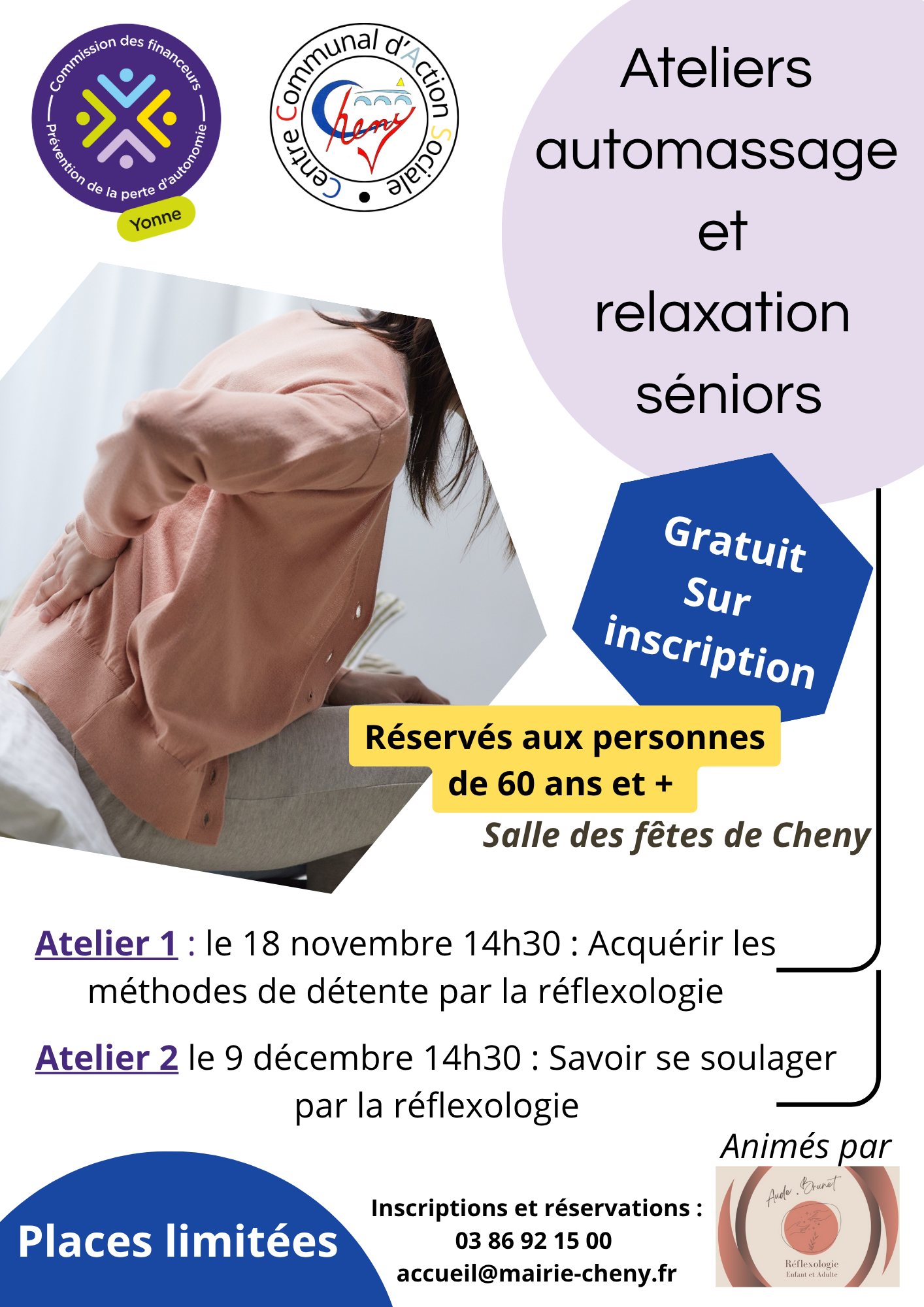 Ateliers automassage et relaxation à Cheny, pour les +60 ans
